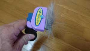 今更ながらのファーミネーターですが、やっぱり使い勝手はいいし、みるみるうちに毛は抜けるしでネットでの評判も上々です。値段はボチボチですけどね。