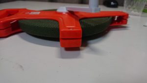 ワッシャーの厚みが0.5mmですから、突起を1.5mmくらいまで削ることにしました。合わせて、2.0mmですから、ケースに余裕ができます。